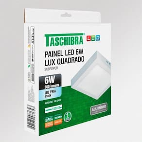 Painel de Led Quadrado Sobrepor 6W Bivolt Taschibra 6500K Luz Fria