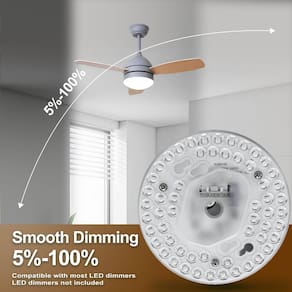 - ?Ampla aplicação?Esta substituição de luz de ventilador de teto LED é adequada para a maioria dos kits de luz de ventilador de teto LED integrados e luzes de teto sem lâmpada. Perfeito para casa, garagem, depósito, bancada, porão, embaixo do armário, escritório, hotel, escola, loja, clínica.