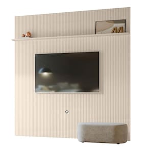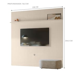 Painel em MDF frisado (baixo relevo), estrutura com chapas em MDP e MDF de 12 e 25mm. Suporta até 75. Produto desenvolvido para ser fixado na parede. O televisor deve ser fixado no painel.