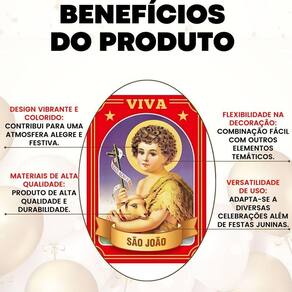 O Painel Decorativo Festa Junina São João da NC Toys traz toda a alegria e colorido típicos das festas juninas. Com dimensões de 70cm x 50cm, este painel irá garantir um ambiente festivo e temático para sua comemoração.