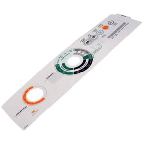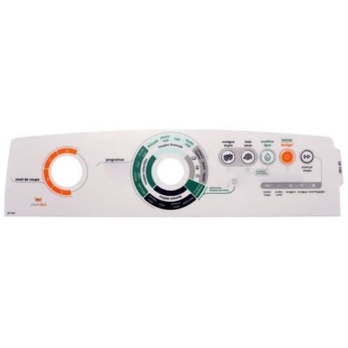 Painel decorativo também conhecida como painel adesivo ou película é responsável por proteger a placa interface contra umidade e de receber os comandos do usuário para seleção das funções da lavadora.
