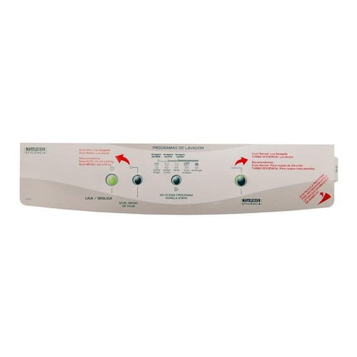 O painel decorativo compatível lavadora brastemp bwm08a é responsável por proteger a Placa interface contra umidade e de receber os comandos do usuário para seleção das funções da lavadora.