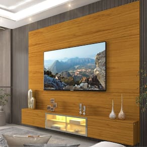 Painel Estante Home Suspenso Gelius Luminare Reflecta para TV de ate 85 polegadas com LED largura de 217 cm 100% MDF Naturale