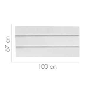- Largura: 100 cm; - Altura: 67 cm; - Profundidade: 11 cm; - Produto estofado; - Produzido em Madeira de Pinus e Eucalipto; - Pés em pvc;