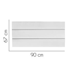 - Largura: 90 cm; - Altura: 67 cm; - Profundidade: 11 cm; - Produto estofado; - Produzido em Madeira de Pinus e Eucalipto; - Pés em pvc;