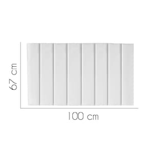 - Largura: 100 cm; - Altura: 67 cm; - Profundidade: 11 cm; - Produto estofado; - Produzido em Madeira de Pinus e Eucalipto; - Pés em pvc;