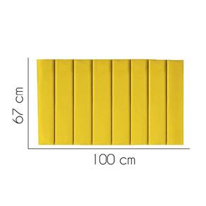 - Largura: 100 cm; - Altura: 67 cm; - Profundidade: 11 cm; - Produto estofado; - Produzido em Madeira de Pinus e Eucalipto; - Pés em pvc;