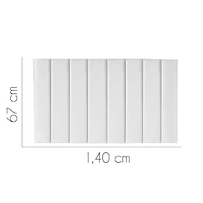 - Largura: 140 cm; - Altura: 67 cm; - Profundidade: 11 cm; - Produto estofado; - Produzido em Madeira de Pinus e Eucalipto; - Pés em pvc;