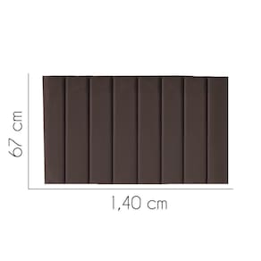 - Largura: 140 cm; - Altura: 67 cm; - Profundidade: 11 cm; - Produto estofado; - Produzido em Madeira de Pinus e Eucalipto; - Pés em pvc;
