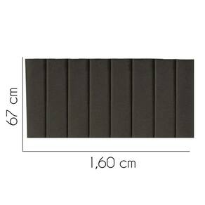 - Largura: 160 cm; - Altura: 67 cm; - Profundidade: 11 cm; - Produto estofado; - Produzido em Madeira de Pinus e Eucalipto; - Pés em pvc.