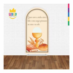 Painel festa decorativo romano primeira eucaristia 3d 180x90cm Estampa: primeira eucaristia - 03 Painel romano em tecido sublimado 180cm x 90cm