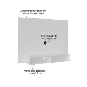 Os momentos de maior descontração em frente à TV ou em confraternizações com amigos em casa ocorrem na sala. E o Painel Flash surgiu para unir o útil ao agradável. Útil, porque você precisa de um suporte de qualidade para sua televisão e agradável porque confere beleza e modernidade ao ambiente. Acompanha suporte e ferragens para fixação da TV. Possui prateleira e nichos para aparelhos eletrônicos. Com pintura UV texturizada, sua manutenção fica muito mais fácil.