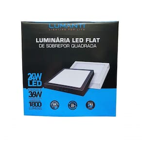 Painel Flat LED 24W Sobrepor Preto Branco 6500K - Lumanti