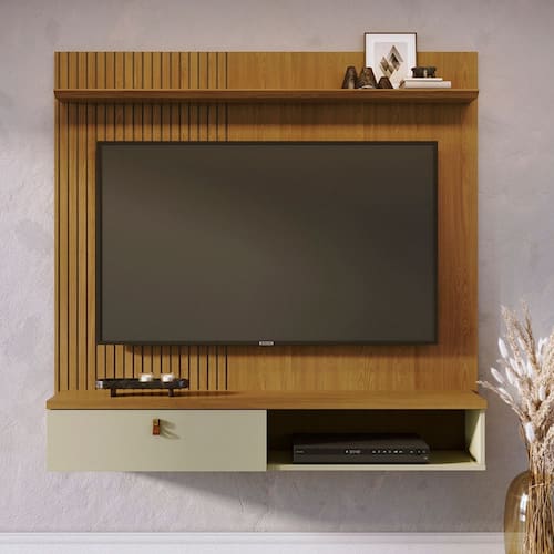 Características: Material produto: MDP e MDF Suporta TV até 55 polegadas Revestimento: Pintura UV 1 Porta Basculante 1 Prateleiras Puxadores: em plástico Com detalhes frisado Fixação com minifix. Peso suportado: 1 á 25 Kg