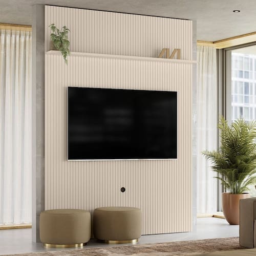 Painel Frisado para TV até 65 Polegadas Interlagos Madetec, oferecendo uma solução funcional e elegante para compor o ambiente. O televisor deve ser instalado no próprio painel, garantindo um visual limpo e organizado. Com acabamento frisado em baixo relevo. ele é produzido em MDF e conta com uma estrutura robusta, composta por chapas de MDP e MDF nas espessuras de 12 e 25mm, unindo resistência, qualidade e sofisticação em um único produto.
