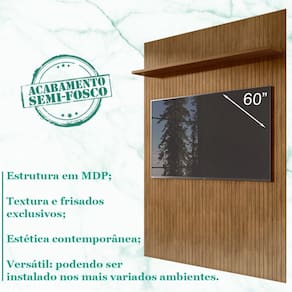 Painel Frisado Piso Teto 220x220 Cm Tv 60 Polegadas 008176, com sua estética contemporânea, irá transformar sua sala de estar, área de lazer ou até dormitório, em um lugar ainda mais agradável. Elaborado em MDP de 25mm e 15mm. Possui prateleira de 25mm que suporta até 5 kg. No painel pode ser fixada TV de até 60 polegadas, possui abertura para passar os fios e sua pintura possui acabamento Print Wood patenteado e frisado, ambos exclusivos Casa D. É parafusado diretamente na parede, com o auxílio de parafusos e buchas. Com todo seu charme ele será sem dúvida, o destaque de seu cômodo. Este móvel chegará na sua casa separado em 02 volumes.