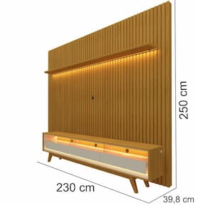 Painel:Largura: 230 cmAltura: 250 cmProfundidade: 5 cmRack:Largura: 211,4 cmAltura c/ pés: 58 cmAltura c/ rodízios: 45 cmProfundidade: 34,8 cmPeso: 155 KgGarantia: 03 mesesInformações: Sobre Montagem: Não possuímos serviço de montagem. Todos os móveis possuem garantia e manual de montagem, Não nos responsabilizamos pelos custos de montagem. É de extrema importância ficar atento às dimensões dos produtos, pois é de sua total responsabilidade caso o produto tenha dimensões superiores ao local de acesso da entrega dificultando ou impossibilitando que a mesma seja concluída. Não nos responsabilizamos, no ato da entrega, por subir escadas, corredores e elevadores ou transporte por guincho em apartamentos. Não nos responsabilizamos por transtornos com a entrega caso o produto necessite de desmontagem, nem pelos custos gerados por esta situação. Imagens meramente ilustrativas a cor, pode variar de acordo com a iluminação do ambiente. Itens de decoração não inclusos.