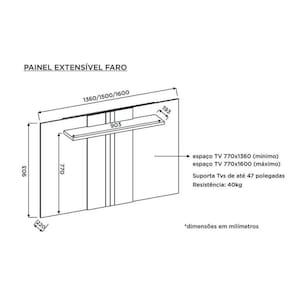 Dimensões(Cm): Comprimento(Profundidade): 22cm x Largura: 160cm x Altura: 90cm