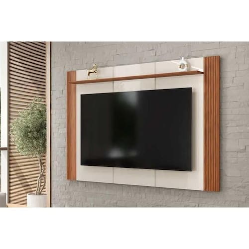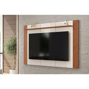 Painel Home p/ TV até 75 Pol Helo 183x136cm Off White/Freijó - DJ Móveis