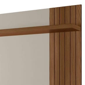 Fabricado em MDF e MDP, o painel possui acabamento em Finish Foil e pintura UV, garantindo durabilidade e um visual elegante. Conta ainda com espelho decorativo, vidro (não temperado) e espaço para acomodar aparelhos eletrônicos com praticidade.