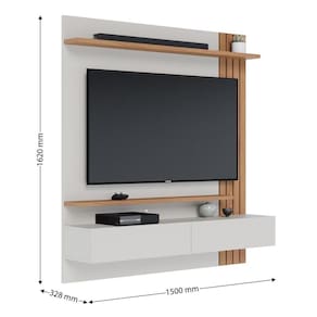 Minimalista e clean, o Home Suspenso Juriti é um painel funcional e uma ótima opção para clientes que buscam um móvel para otimizar o espaço para sem abrir mão de televisores maiores, seja ele na sala de estar, home cinemas ou até mesmo em quartos. Com ripados decorativos em sua lateral, possui uma prateleira superior e outra inferior, além de duas portas basculantes com espaço interno para acomodar objetos de maneira prática e organizada. Suporta até 65.