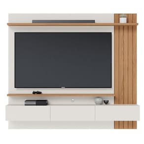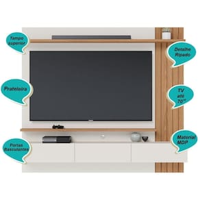 Minimalista e clean, o Home Suspenso Juriti é um painel funcional e uma ótima opção para clientes que buscam um móvel para otimizar o espaço para sem abrir mão de televisores maiores, seja ele na sala de estar, home cinemas ou até mesmo em quartos. Com ripados decorativos em sua lateral, possui uma prateleira superior e outra inferior, além de duas portas basculantes com espaço interno para acomodar objetos de maneira prática e organizada. Suporta até 70.
