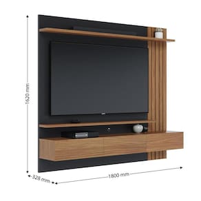 Minimalista e clean, o Home Suspenso Juriti é um painel funcional e uma ótima opção para clientes que buscam um móvel para otimizar o espaço para TV sem abrir mão de televisores maiores, seja ele na sala de estar, home cinemas ou até mesmo em quartos. Com ripados decorativos em sua lateral, possui uma prateleira superior e outra inferior, além de duas portas basculantes com espaço interno para acomodar objetos de maneira prática e organizada. Suporta TV até 70.