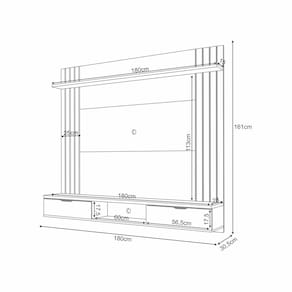 • Espaço para TV no Painel: Altura: 113 cm - Largura: 180 cm - Profundidade: 28 cm