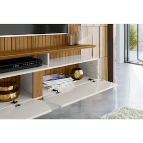 Itens Incluso: Painel Intense 2 Portas Freijo Ripado/Off White Perolizado, kit de montagem e manual de instrução