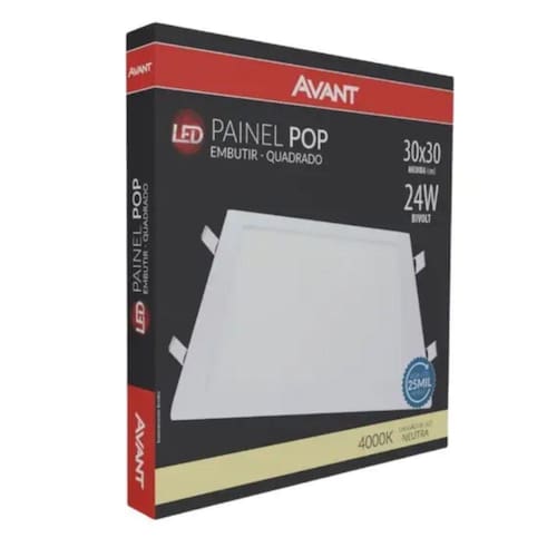 Painel LED 24W Embutir Neutro 4000K - Avant Os Painéis LED estão disponíveis no formato quadrado, sendo versátil, proporcionando uma iluminação homogênea com design clean e moderno é indicado para instalações diretamente sobre a caixa de passagem, em superfícies de alvenaria ou concreto.