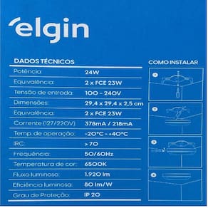 Características Gerais do Produto: • Material do Produto: Metal; Plástico • Potência/Watts: 24W • Tipo de Luz: Luz Fria/Branca