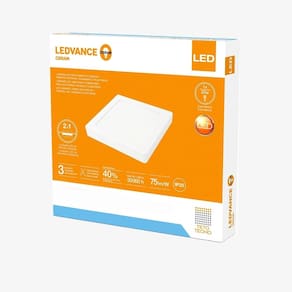 SLIM PLAFON SQUARE 15 W 3000 K Benefícios do produto Economia de energia até 90 por cento em relação aos projetores com lâmpadas de halogéneo Design 2 em 1 - montagem embutida ou montagem de superfície com kit complementar Design muito elegante 3 anos de garantia Instalação simples e rápida DADOS TÉCNICOS DADOS ELÉTRICOS Potência nominal - 15,00 W Tensão nominal - 100…240 V Frequência da rede - 50…60 Hz Corrente nominal - 118 mA Fator de potência - 0,50 Grau de proteção - II DADOS FOTOMÉTRICOS Fluxo luminoso - 1125 lm Rendimento luminoso - 75 lm/W Temperatura de cor - 3000 K Tonalidade (designação) - Warm White Índice de reprodução de cor Ra - maior 80 Ângulo de abertura - 120 ° DIMENSÕES & PESO Comprimento - 20 cm Altura - 4 cm Largura - 20 cm Peso do produto - 420 g MATERIAIS & CORES Cor do produto - Branco Cor do corpo - Branco Material do corpo - Policarbonato Quantidade de mercúrio - 0 mg APLICAÇÃO & INSTALAÇÃO Temperatura ambiente - 20…+40 Graus Celcius Tipo de protecção - IP20 Grau de proteção impacto mecânico PIM - IK07 Dimmable - No Tipo de montagem - Surface Local de montagem - Teto Application environment - IndoorIndoor Módulos LED substituíveis - Não substituível