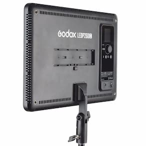 Iluminador LED Godox LED-260C com Controle Remoto - Slim - Com Fonte de Alimentação - 3300k a 5600k - 2200 Lux - 256 Peças de LED - Painel Digital O Godox LEDP260C Video Light é um iluminador profissional que fornece uma solução de iluminação funcional e durável para trabalhos de estúdio e externas, sendo excelente para macrofotografia, fotojornalismo e gravação de vídeo, etc. Características A placa de luz fornece luz suave, iluminação uniforme, um amplo espectro e temperatura de cor precisa. Intensidade e temperatura de cor ajustáveis. Painel LCD de grande porte. Configurações auto salvas. Sistema de agrupamento sem fio 433MHZ 6 grupos e 16 canais Bateria de lítio NÃO incluída ou DC carregada. Vem com um controle remoto, cabo removível e adaptador de AC. Especificações Modelo: LEDP260C Bateria de lítio: 7.4V bateria de lítio modelo Sony NP-F970, não incluída Fonte de alimentação DC: 13 16.8V Potência: Max.30W Temperatura de cor: 3300K 5600K 300K Canal: 16 Grupo: 6 A, B, C, D, E, F Brilho LUX : 2050 0,5 m / 4500 K , 2050 0,5 m / 3300 K , 2200 0,5 m / 5600K Quantidade de contas de LED: 3300K: 128, 5600K: 128 Índice de reprodução de cores: 95TLCI Qa 94 Light Brightness Range: 3300K 5600K: 10% -100% Temperatura de operação: -10 -40 Dimensão: 360x 240 x 27mm Peso líquido: 917g Ean: 7898576369668