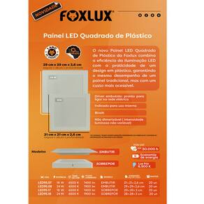 O Painel LED Quadrado Embutir 18W 6500K Bivolt Foxlux é a solução para quem busca uma iluminação intensa e eficiente em ambientes amplos. Com uma potência de 18W e uma temperatura de cor de 6500K, este painel possui uma luz branca fria, perfeita para áreas que requerem alta visibilidade, como escritórios, salas de reunião, cozinhas e ambientes comerciais.