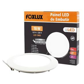 Painel de LED Downlight Foxlux ? Redondo ? Embutir ? Luz Branca (6500K) ? 18W ? Bivolt automático