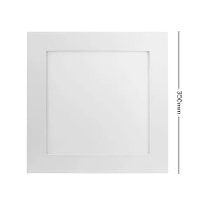 Frequência: 60 Hz;Dimensões AxLxP (mm): 30x300x300;Cor: Branco;Material: Termoplástico Proshield UV;Garantia: 2 anos junto ao fabricante;Voltagem: Bivolt;Grau de Proteção: IP 40;Ângulo de Abertura: 120;Dimerizável: Não;Fator de Potência: 0,5;Formato: Quadrado;Potência: 25W;Vida Útil: 25.000 horas;Instalação: Embutir;Nicho para Instalação: 33x275x275mm;Modelo/Tecnologia: LED Embutido;