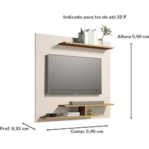 Painel Luxo Tv até 32 Polegadas Prateleira Oregon Plus - Cores - Comprar Moveis para sua casa Cor: Off white/Nature Painel Osiris sala para Tv até 32 Polegadas é embalada individualmente, com qualidade e . Vendido pela Comprar Moveis em Casa que oferece um ambiente sofisticado de alta qualidade e acabamento para sua sala. Procure nossas redes sociais e confira todos nossos produtos e qualidade de atendimento : Este produto possui video no canal de auxilio de montagem. DIMENSÕES DO PRODUTO MONTADO: Altura 0,90 cm Lagura 0,90 cm Profundidade 0,20 cm Produto não acompanha suporte para fixar Tv Produto possui furação para passar cabos Prateleiras Material: MDP / MDF Pode ocorrer variações diferentes a cada lote de fabricação Pintura UV MONTAGEM: Este produto acompanha kit de montagem + manual de instrução detalhando passo a passo de como montar. Este produto serve para tvs de até 32 polegadas e a tv deve ser fixada no painel para não exceder o peso das prateleiras. O manual descreve os pesos suportados em cada prateleira. A montagem do produto deverá ser feita por um , para que não ocorram danos no produto. não nos responsabilizamos por erro de montagem Atenção: A montagem não é oferecida pela Comprar Moveis em Casa, a montagem do produto é por conta do comprador. OBSERVAÇÕES IMPORTANTES: A é de 90 dias por defeitos de fabricação. Se no ato de recebimento do produto o cliente verificar que o produto não está em prefeito estado, principalmente por ocasião de transporte irregular, o cliente deverá recusar o recebimento do produto e entrar em contato para resolver o problema. Podem haver variações referentes à tonalidade das cores expressas nas fotos, por conta de fatores como iluminação e brilho de cada monitor/celular. Fotos meramente ilustrativas não acompanham os produtos de decoração. Se atente a politica de troca/devolução da empresa, pois o produto montado não pode ser devolvido. Marca: Não Informado