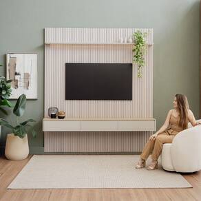 O Painel Ripado Modular é a escolha ideal para compor um ambiente elegante e moderno. O conjunto conta com uma prateleira com cantos arredondados e iluminação em LED, nicho também arredondado para acomodar aparelhos eletrônicos e duas portas basculantes com pistão a gás. Seu design clean valoriza a decoração e transforma sua sala com um toque contemporâneo e sofisticado.