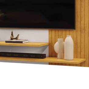 Painel Nando Com Ripas E Prateleira Cedro Com Bali Com design contemporâneo e funcionalidade na medida certa, o Painel Nando é ideal para transformar sua sala de estar em um ambiente moderno e bem modelo acomoda TVs de até 50 polegadas e conta com espaço superior para itens decorativos, além de nicho central para aparelhos eletrô diferencial está no acabamento sofisticado e no visual clean, que valoriza o ambiente sem estrutura garante durabilidade e resistência, enquanto as linhas retas proporcionam elegância e versatilidade na composiçãões:Altura: 107,8cmLargura: 136cmProfundidade: 26,9cmObservações:- Ideal para TVs de até 50 polegadas- Nicho funcional para eletrônicos e decoração- Estrutura resistente- Visual moderno e fácil de combinar- Perfeito para salas compactas ou ambientes integrados