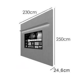 Painel Nobre Sem Nicho 230cm para TV até 85 Polegadas com LED Gelius O Painel Nobre Sem Nicho 230cm para TV até 85 Polegadas com LED Gelius, chega para agregar beleza e elegância ao seu ambiente. Um móvel funcional e moderno que harmoniza facilmente com diversas decorações. Se você deseja um Painel para TV que traga sofisticação para o seu ambiente, acabou de encontrar o modelo ideal.\nMEDIDAS\nAltura 250cm\nLargura 230cm\nProfundidade 24,6cm\nCARACTERÍSTICAS\nFabricante Gelius\nModelo Painel Nobre Sem Nicho 230cm\nGarantia 3 meses\nTipo de produto Painel para TV\nAmbiente Sala de Estar\nEstrutura 100% MDF\nEstilo Moderno\nQuantidade de Gavetas Não Possui\nIdeal para TVs de até 85 Polegadas\nQuantidade de Prateleiras 01\nTipo de Corrediça Não Possui\nAcompanha Iluminação LED Sim, LED em luz quente com difusor\nAcabamento Pintura UV\nNecessita Montagem Sim\nAcompanha Manual de Instalação Sim\nINFORMAÇÕES IMPORTANTES\nObjetos decorativos que porventura apareçam na foto, não acompanham o produto. Não nos responsabilizamos pela montagem/instalação dos produtos.\nMontagens, desmontagens e instalações são responsabilidades do cliente. Indicamos que contrate uma empresa de montagem ou um montador de sua confiança.\nAlém disso, favor verificar se os pés e acessórios estão dentro do forro inferior do produto. Em suma, todas as informações divulgadas sobre o produto são de responsabilidade do Fabricante.\nAs cores do produto podem variar de acordo com o seu monitor, a iluminação do ambiente em que você está e até mesmo a sua percepção visual. Além da cor, pequenos detalhes e acabamentos podem não ficar evidentes na foto, por isso as imagens são meramente ilustrativas.