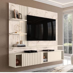 Diferenciais: Detalhe ripado. Fita de LED nas prateleiras. Design moderno. Sistema de Montagem: Parafuso/ Miniflix / Cavilhas. Manual de Montagem: Sim. Complexidade da Montagem: Média. Conteúdo da Embalagem: 1 Painel. Volumes: 2 Volumes. Montagem: Recomendamos que seja feita por um profissional. Recomendação de limpeza: Utilize pano levemente úmido.