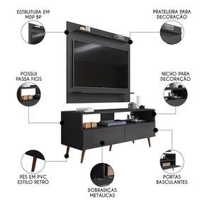 Transforme sua sala de estar em um verdadeiro paraíso de organização e estilo com o incrível e encantador Painel para 50 Pol Senna e Rack Bancada 136cm Versa Z34 Preto, da Mpozenato.