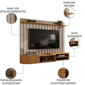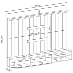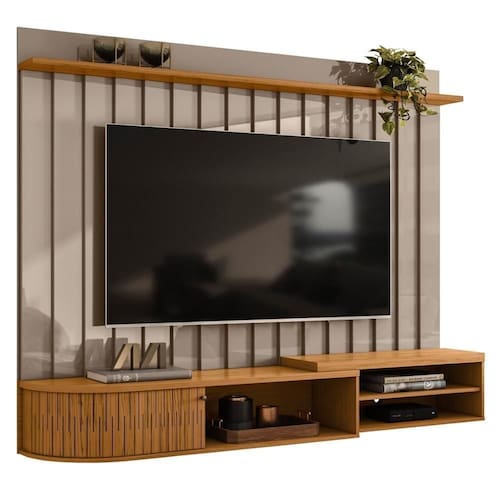 O painel de possui uma estrutura sólida e durável, garantindo que ele suporte o seu televisor até 75 polegadas com . Além disso, a bancada suspensa oferece espaço adicional para você organizar seus aparelhos eletrônicos, como DVD player e vídeo game. Já o design elegante e minimalista se encaixa perfeitamente em qualquer decoração de sala de estar, desde os estilos mais tradicionais até os mais contemporâneos.