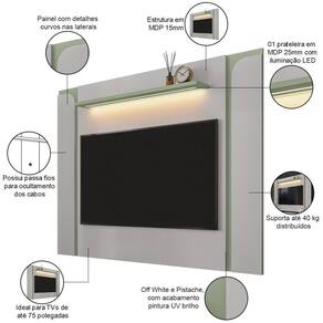 Color: OFF WHITE | ColorFamily: Off White | ColorSimple: Off White | ColorSupplier: Off White Pistache | Material: MDP | MaterialFamily: MDP | OriginCountry: | OriginState: PR | ProductContents: 01 Painel, manual de montagem, acessórios | ProductHeight: 136 cm | ProductInstructions: Produto para uso em ambiente interno, nao devendo ficar exposto ao sol, calor e umidade excessivos. | ProductLength: 21 cm | ProductWarranty: 90 dias após o do produto | ProductWeight: 38 kg | ProductWidth: 180 cm | SizeDescription: Altura: 136 cm x Largura: 180 cm x Profundidade: 21 cm | SupplierSimpleName: Painel Para 75 Pol Com LED 180cm Maresca B02 Off White Pistache - Lyam Decor | Model: Maresca | Altura: 136 cm | Com compartimento para alto-falantes: Não | Com rodas: Não | Cor: Off White Pistache | Formato do móvel: Painel Para | Material da estrutura: MDP | Tamanho máximo de : 75 Polegadas | Quantidade de prateleiras: 1 | Largura: 180 cm | Profundidade: 21 cm | Requer montagem: Sim | Material das corrediças: na | Materiais do corpo: MDP | Peso: 38 Kg