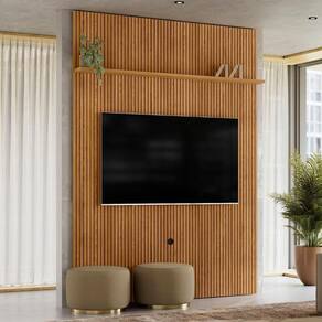 Desenvolvido para ser fixado diretamente na parede, o Painel de garante um visual limpo e organizado, sendo ideal para acomodar o 's de até 75 Polegadas. Fabricado com chapas de MDP e MDF de 12 e 25mm, o Painel combina resistência e durabilidade, enquanto o acabamento frisado em MDF proporciona um design sofisticado que valoriza a decoração do ambiente. A prateleira integrada é ideal para acomodar objetos decorativos ou aparelhos eletrônicos, tornando o espaço funcional e elegante. Com um visual elegante, o Painel Frisado é a solução ideal para quem deseja otimizar o espaço, mantendo o ambiente harmônico e moderno.