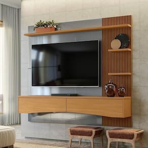 Versatilidade: Ideal para TVs de até 65 polegadas, com prateleiras para acomodar aparelhos eletrônicos e objetos decorativos.