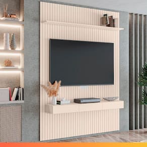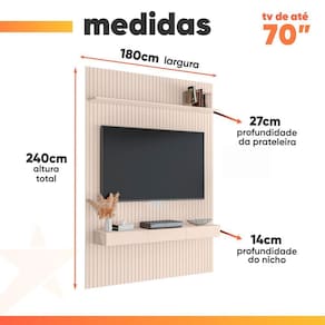O Painel Arbo 1,80x2,40m é perfeito para quem quer dar um toque mais elegante ao ambiente! Com estrutura resistente e detalhe ripado em design moderno, conta com uma prateleira e um nicho com três portas basculantes, ideais para acomodar objetos de decorações e aparelhos eletrônicos e, além disso, pode ser combinado com outros móveis e acomoda de até 70 polegadas!