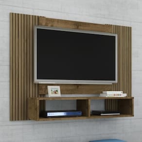 Além de ser produzido em MDP de 15mm e Detalhe em Ripas, o Painel possui 2 Nichos para a organização de Eletrônicos
