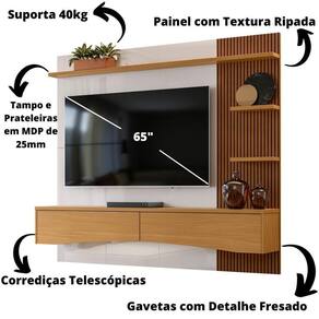 Versatilidade: Ideal para TVs de até 65 polegadas, com prateleiras para acomodar aparelhos eletrônicos e objetos decorativos.