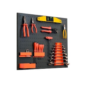 Painel Para Ferramentas em Aço 37,5x57,5 Cm 40400 Presto PAINEL 375 X 575MM para FERRAMENTAS PRESTO Painel para ferramentas totalmente confeccionado em chapa de aço de baixo teor de carbono com espessura de 0,60mm com sistema de dobra simples na parte superior e inferior e dobras duplas nas laterais. Possui 04 quatro furações para instalação nas dobras laterais em formato oblongo para encaixe do painel aos parafusos previamente instalados na parede. 180 cento e oitenta furações de diâmetro 5.3mm em dispostos 18 dezoito linhas verticais de furos em passos de 28mm e 10 dez linhas horizontais de furos em passos de 37mm. Acabamento superficial através de tratamento químico antiferruginoso e fosfatizante com pintura eletrostática a pó com camada mínima de 70 micras. VantagensResistente: produzida em aço;Durabilidade: acabamento antiferrugem;Excelente custo-benefício;Fácil fixação na parede;Embalagem única;Pintura texturizada;Furação para fixação na parede. Largura575mm Altura375mm Profundidade20mm Peso1,545kg Carga máxima20kg distribuídos